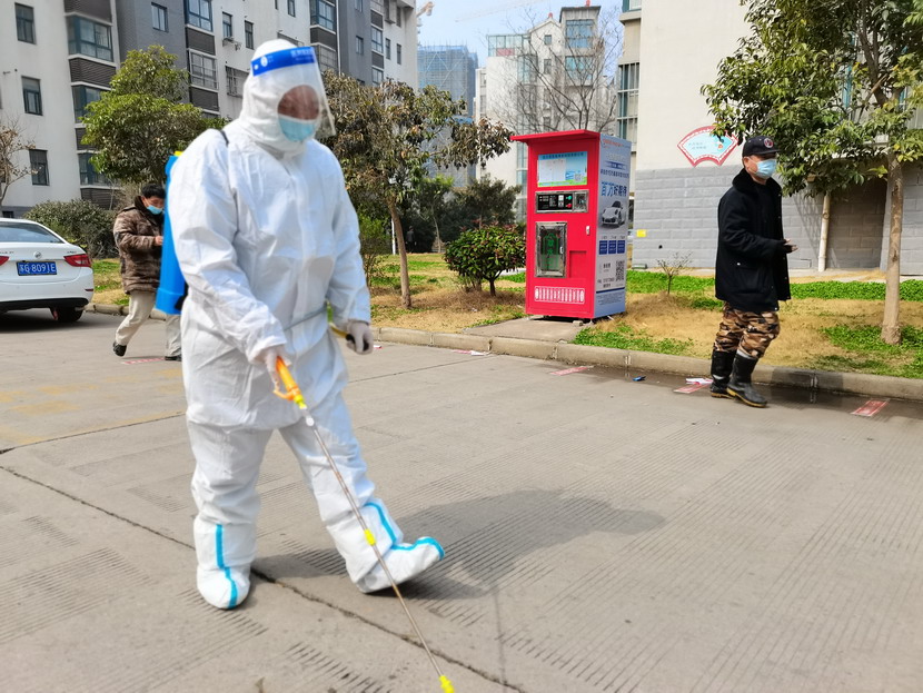 孫銀:“請(qǐng)大家抬一下腳,靠邊站一下,我將您的周?chē)鷩姙⑾疽哼M(jìn)行消毒,謝謝配合!”