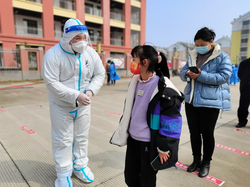 姜海洋:“小朋友,請(qǐng)把口罩戴好,一定要戴到鼻子上面哦!”
