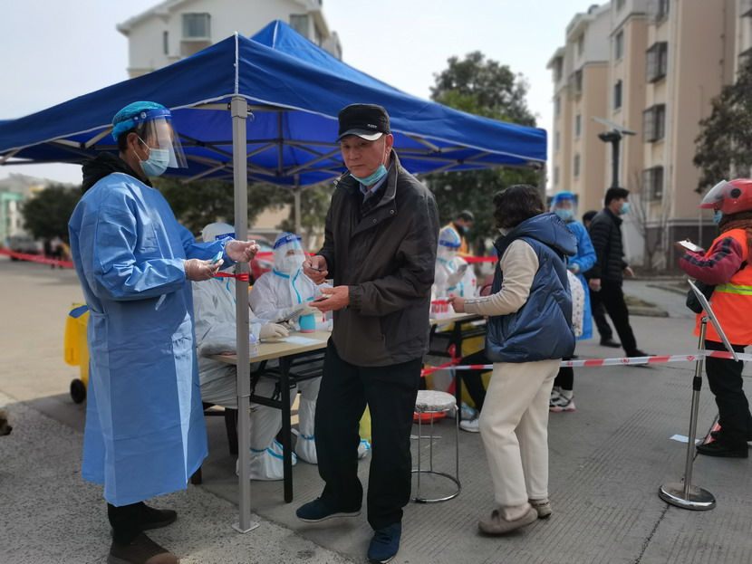夜里9點(diǎn)40分,昌圩臨時(shí)黨支部抗疫工作群里信息不斷:“同志們,剛接社區(qū)緊急通知,明天要進(jìn)行第五輪核酸檢測(cè),還沒(méi)有睡的同志們請(qǐng)到社區(qū)緊急集合,又增加兩個(gè)檢測(cè)點(diǎn),抓緊去建點(diǎn)擺臺(tái)?!? “霍正鋼收到、蘇玲收到、秦黎明收到、朱文健收到、邱榮濱收到、于洪亮收到……”,“好,晚上溫度比較低,請(qǐng)大家穿暖和一點(diǎn),10點(diǎn)社區(qū)準(zhǔn)時(shí)集合?!辈着R時(shí)黨支部書(shū)記李明發(fā)完最后一條信息,穿好馬甲,戴上口罩,出發(fā)下樓。