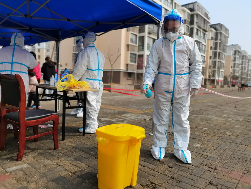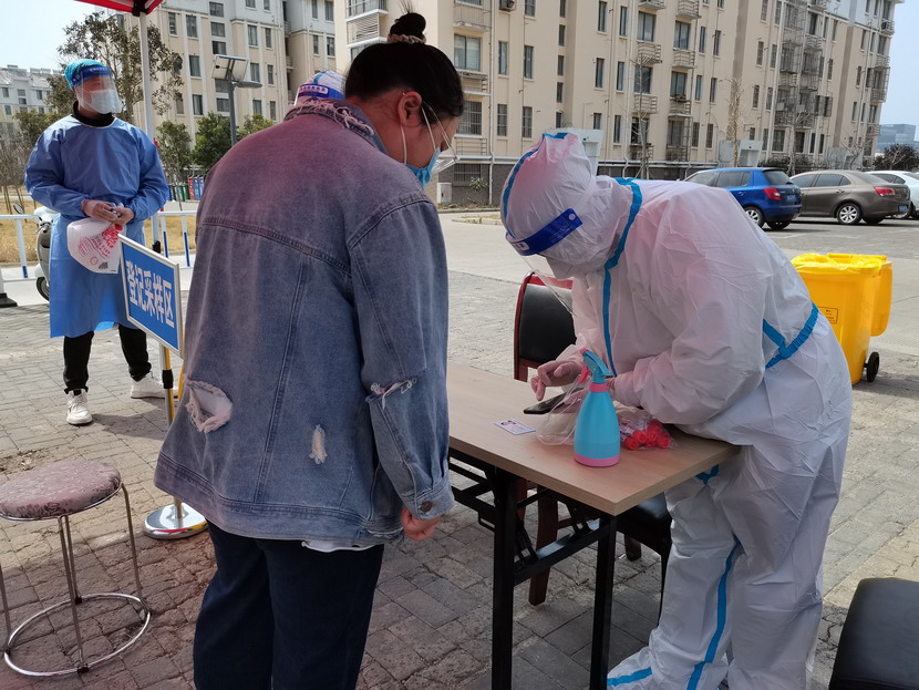 清晨6點(diǎn)30分,1號(hào)檢測(cè)點(diǎn),李明同志在檢查物資,“大白”服裝4套、“小藍(lán)”服裝6套、棉簽600根……;2號(hào)檢測(cè)點(diǎn),于洪亮在將物資上桌,病毒核酸檢測(cè)試管、棉簽、消毒液,“還缺少一瓶酒精,我立即反饋給社區(qū),請(qǐng)社區(qū)抓緊安排送來(lái)”;4號(hào)檢測(cè)點(diǎn),蘇玲、秦黎明正在互相幫忙穿好防護(hù)服,“秦姐,這個(gè)防護(hù)面罩里外有兩層薄膜,我給你撕掉,這樣就不會(huì)有霧氣了”,“嗯嗯,你這個(gè)拉鏈得拉到頂,我們自己也一定要做好防護(hù)”秦黎明溫柔的說(shuō);5號(hào)檢測(cè)點(diǎn),內(nèi)退黨員孫芳和姜海洋,互相在防護(hù)服后背寫(xiě)上對(duì)方的名字,以便于更高效的完成檢測(cè)工作;6號(hào)檢測(cè)點(diǎn),霍正鋼、朱文健、韓永剛、邱榮濱正在清點(diǎn)檢測(cè)小卡片;7號(hào)檢測(cè)點(diǎn),張強(qiáng)在拿著酒精給廢物處置垃圾箱消毒;8號(hào)檢測(cè)點(diǎn),新加入的孫銀、占恒春、尹永明、韓永光、趙紹慶正在給消殺噴霧劑灌裝84消毒液,社區(qū)8個(gè)檢測(cè)點(diǎn)的消殺工作全部由昌圩臨時(shí)黨支部志愿者負(fù)責(zé)。