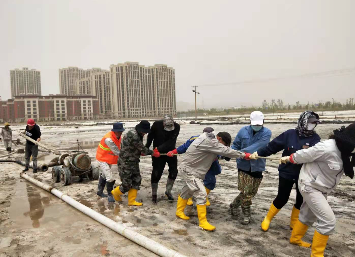 “百日會(huì)戰(zhàn)”完美收官,大家以黨史學(xué)習(xí)教育為精神動(dòng)力,弘揚(yáng)“四再”創(chuàng)業(yè)精神,淬煉“四拼”工作作風(fēng),展現(xiàn)出強(qiáng)有力的政治責(zé)任感和歷史使命感,在廣袤的鹽田上,用勤勞的汗水譜寫“四個(gè)最”的美麗華章。開局最早,搶抓春景好時(shí)光,開創(chuàng)歷史最早記錄,“破天荒”地從大年初十開啟扒鹽。戰(zhàn)線最長(zhǎng),以西灘機(jī)械扒鹽為起點(diǎn),歷經(jīng)東灘、大八組、海濱人工扒鹽,二組、西灘雙線齊上、火力全開,至東灘機(jī)械扒鹽落下帷幕,實(shí)現(xiàn)了“漫漫長(zhǎng)征路”的圓滿勝利。歷時(shí)最久,整整百日一舉打破扒鹽歷時(shí)最久記錄,從冷冽刺骨的寒風(fēng),到烈日當(dāng)空的火熱,從臃腫的棉襖,到清涼的短袖。困難最多,面對(duì)天時(shí)不利的氣象條件,面對(duì)著堿廠關(guān)停的嚴(yán)峻局勢(shì),面對(duì)著環(huán)保安全的巨大壓力,面對(duì)著人手不足的現(xiàn)實(shí)問題,團(tuán)結(jié)一心,攻堅(jiān)克難,迎接挑戰(zhàn),眾志成城筑鹽山,“暑霜春雪”顆粒盡歸倉。