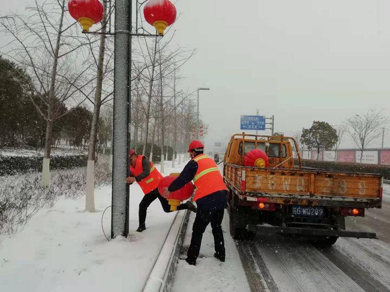 一夜的狂風(fēng)暴雪將花果山大道路上的亮化燈籠刮掉不少,該項(xiàng)工程是翔立分公司今年承接開(kāi)發(fā)區(qū)市政第一個(gè)亮化工程,安裝維護(hù)質(zhì)量的好壞決定著這該項(xiàng)目工程的能否持續(xù)承接。帶著一份堅(jiān)守、心懷責(zé)任、更帶著翔立轉(zhuǎn)型發(fā)展的希望,“鐵軍”們一大早就已經(jīng)整裝待發(fā),奔赴施工現(xiàn)場(chǎng)收集整理燈籠。