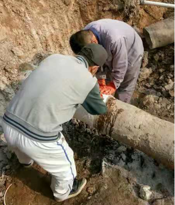 鏡頭三:東輸灌西的鈣液管道因使用年久老化,在新東方大道路下的穿越自然損壞,為了不影響鈣液銷售,搶修工作正“馬不停蹄”!