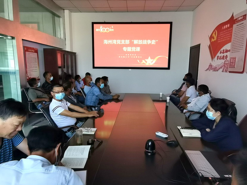 為扎實推進黨史學(xué)習(xí)教育深入開展,強化學(xué)習(xí)實效,8月25日下午,海州灣黨支部組織全體黨員和入黨積極分子上了一堂生動的黨史學(xué)習(xí)教育專題黨課。