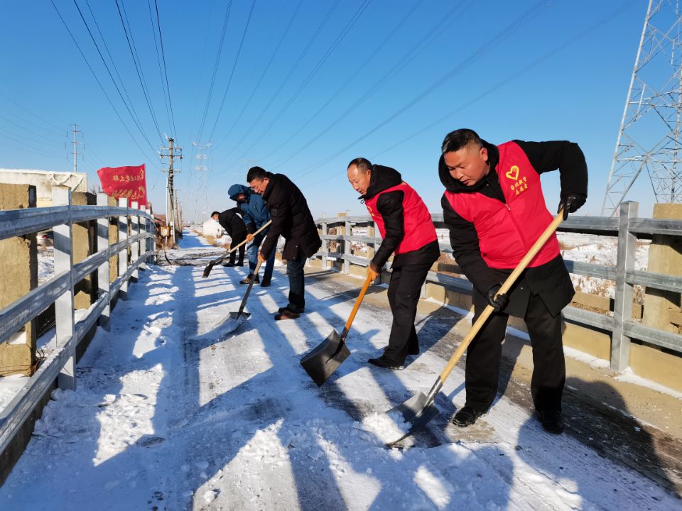 掃雪過程中,各位黨員精神飽滿、分工有序,大家揮鍬舞鏟、除雪破冰,在結(jié)冰頑固的地方撒上鹽粒進行融化。前來辦事的海州灣公司、翔立分公司的兄弟們主動加入,大家干的熱火朝天,充分發(fā)揮了黨員的先鋒模范作用和甘于奉獻的精神,勞動的熱情和團結(jié)的力量讓這個冬日變得格外溫暖。經(jīng)過一個多小時的共同努力,大家清掃了工區(qū)主干道和上灘必經(jīng)之路等重要路段的積雪,開辟了一條洋溢著暖心溫情的通暢之路。