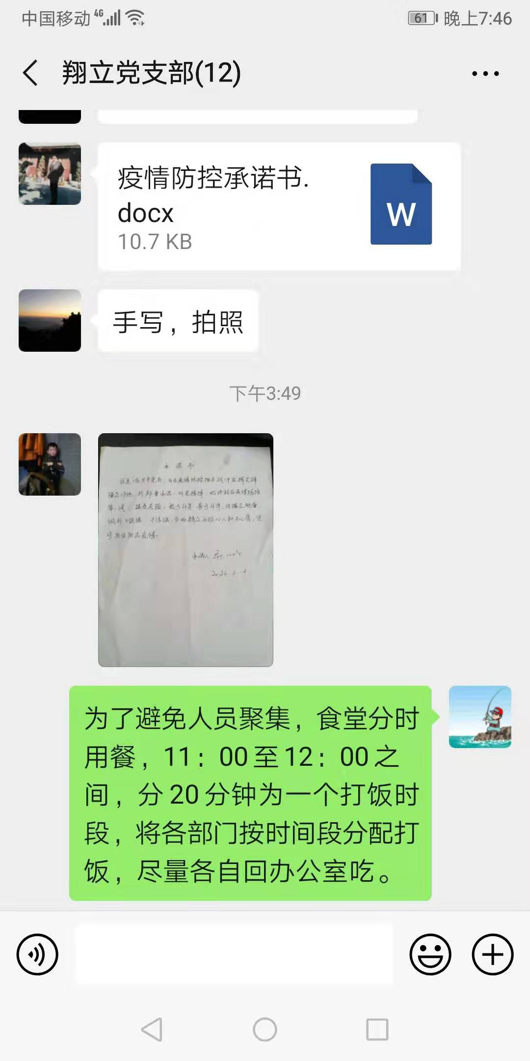 開展疫情防控建言獻策活動。根據(jù)公司要求,翔立支部利用支部微信群,QQ辦公群等媒體工具,組織開展了“疫情防控我承諾”,根據(jù)疫情防控要求全體管理人員和黨員同志們簽下承諾書。根據(jù)各崗位特點全員開展“我為疫情防控出份力”活動,號召大家出謀劃策,暢所欲言將好的做法,合理的建議等進行討論,使大家積極參與到“我為疫情防控獻一策”等活動中。