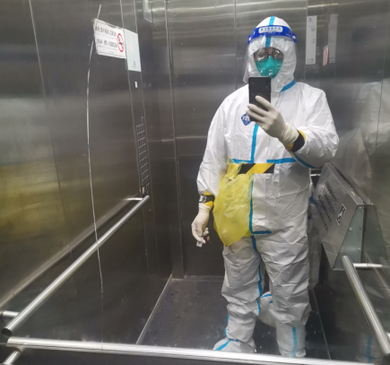 ? ? 14日? 雷聲驟響,大雨突降,集合時間待定,安心的吃了點早飯,依舊不敢吃多。9點開始,第九輪。我出狀況了,剛采一會口罩松了,眼鏡、面屏上全是霧氣,什么也看不見,沒法操作。為了不影響進度我被換下,原定入戶采集的志愿者頂上。防護服脫了就浪費了,我就等入戶醫(yī)生到達,去上門采集。掃樓和定點完全不一樣,悶、熱,大白服都濕透了。13.40結束,全身“噴殺”消毒,脫裝備,再噴消。飯后沒安排我工作,做了核酸后在小區(qū)里坐了幾個小時,心里始終不能平靜,害怕,不安占據(jù)了我的內(nèi)心,即使做了防護措施但是還是有很大風險,我也有家人,所以我害怕,真的害怕!“沒事的”“沒事”最后還是妻子開解了我。