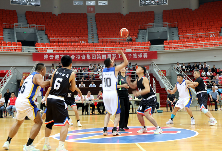 “加油!加油”。伴隨著拉拉隊整齊嘹亮的吶喊聲,徐圩投資公司與灌西投資公司男籃之間的冠軍爭奪賽拉開了序幕。