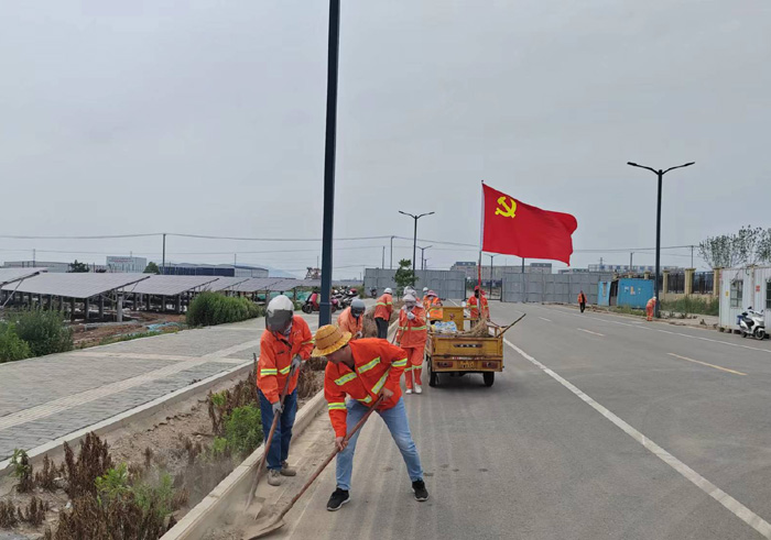 6月21日,該黨支部近30余名黨員在支部的感召下,匯集于新區(qū)節(jié)能一路道路兩邊。勞動現(xiàn)場,黨員生產(chǎn)骨干姚功身先士卒,無懼泥土粉塵揚起,揮汗清理,不怕臟、不怕累,不放過任何衛(wèi)生死角。勞模張學軍與老黨員徐習東相互配合,打包,裝車, 及時轉(zhuǎn)運各類垃圾達50多袋,清掃路面積土近1500米長,大家分工明確,重活臟活搶著干。隊員們齊心協(xié)力,用實際行動詮釋黨員吃苦在前、勇于擔當?shù)姆瞰I精神。經(jīng)過四個多小時清理,主干道及周邊道路垃圾、雜草、泥土全部清理干凈,高質(zhì)量完成奉獻勞動,鮮艷的黨旗在陽光的照耀下顯得格外閃亮。(楊波)