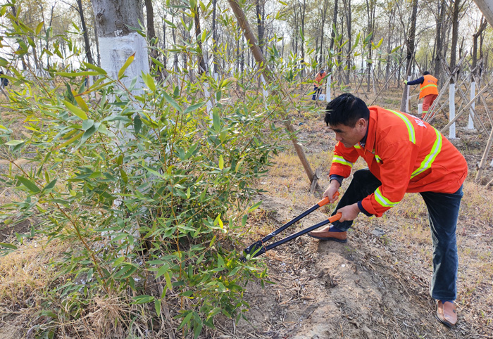 當(dāng)前,為扎實(shí)做好冬季樹(shù)木養(yǎng)護(hù)工作,提高樹(shù)木的過(guò)冬、抗病和抗蟲(chóng)能力,李傳武帶領(lǐng)班組全員開(kāi)展樹(shù)木涂白行動(dòng),悉心為樹(shù)木披上“防寒衣”。為達(dá)到同一標(biāo)準(zhǔn),他采用“立桿涂白法”,首先安排專人進(jìn)行劃線,將行道樹(shù)涂白高度統(tǒng)一控制在1.2米,使區(qū)域內(nèi)涂白高度保持一致,確保樹(shù)木涂白效果與植物整體美觀,經(jīng)過(guò)10天的持續(xù)工作,完成10000余棵行道樹(shù)涂白工作(完成工作量約20%)。