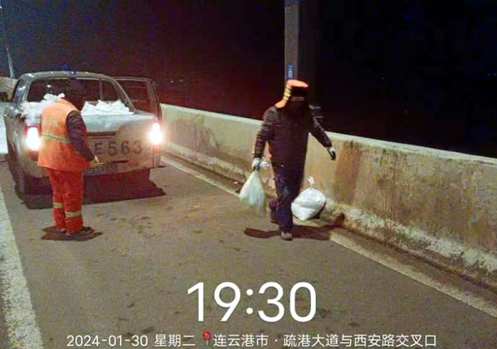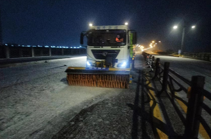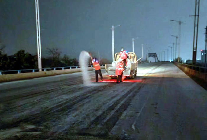 截止早上7點(diǎn),悅升公司共出動(dòng)機(jī)械設(shè)備10臺(tái)、人員260余人,對(duì)橋梁和重點(diǎn)結(jié)冰地段使用融雪劑150余噸,及時(shí)消除路面冰凍隱患100余處。