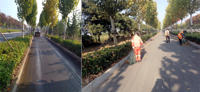 持續(xù)加大環(huán)衛(wèi)巡查力度。該分公司制定詳細預案,成立落葉期專項工作小組。采取人機結合方式,最大化保證清掃效果。加大機械化清掃力度,按照板橋工業(yè)園區(qū)道路環(huán)境,對落葉集中路段進行重點清掃,巡回收集,確保隨落隨清。合理調整環(huán)衛(wèi)保潔人員,重點清掃機械清掃后的停車等障礙死角,適時延長人工保潔作業(yè)時間,加大落地枯死枝撿拾力度,為清掃車作業(yè)清除障礙。