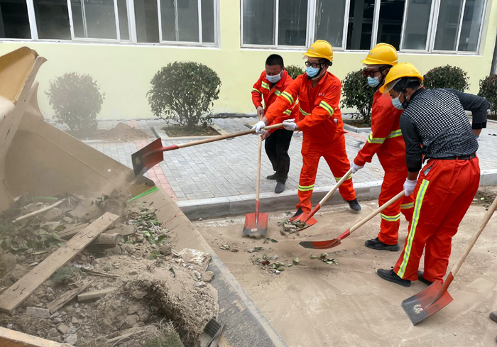 面對繁重工作量,為了切實(shí)加快施工進(jìn)度,悅升公司黨員干部主動(dòng)請纓要求到一線與大家共同奮戰(zhàn)。“不要急,要嚴(yán)格施工流程,確保工程質(zhì)量達(dá)標(biāo)……”該公司負(fù)責(zé)人馮如師邊說邊邊將工程垃圾裝運(yùn)到車上。截止當(dāng)前,該公司班子成員帶領(lǐng)機(jī)關(guān)工作人員堅(jiān)守陣地,持續(xù)工作了17日。為確保高質(zhì)高效完成各項(xiàng)工程任務(wù),大家“白加黑”晝夜不間斷的全力奮戰(zhàn),已完成瀝青路面攤鋪1.7萬m2、園路鋪設(shè)3000m2、路緣石安裝1660m、樹池圍牙砌筑1136m、更換下水道篦子130塊……各項(xiàng)工程任務(wù)完成接近尾聲。